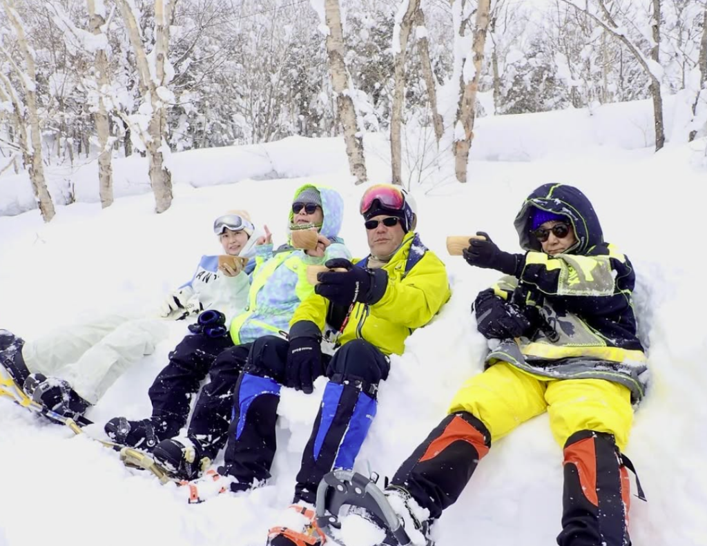 ラストはティーブレイク🫖 みんなで乾杯したひとときは、粉雪と西陽にきらめいて、とても素敵な時間になりました✨