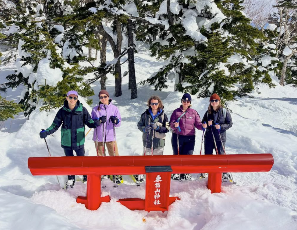 After making our way through the forest, we detoured around a snow-buried torii gate⛩️, climbed the slope, and reached a pristine snowfield!