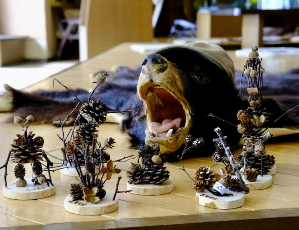 クラフト体験では、昨日、土雛おこみんの絵付けをしてくれた学生さんたちが、今日は森🌳の素材を使って、またもや素敵なオブジェを完成✨ そしてなんと、それを私たちにプレゼント🎁してくれました!