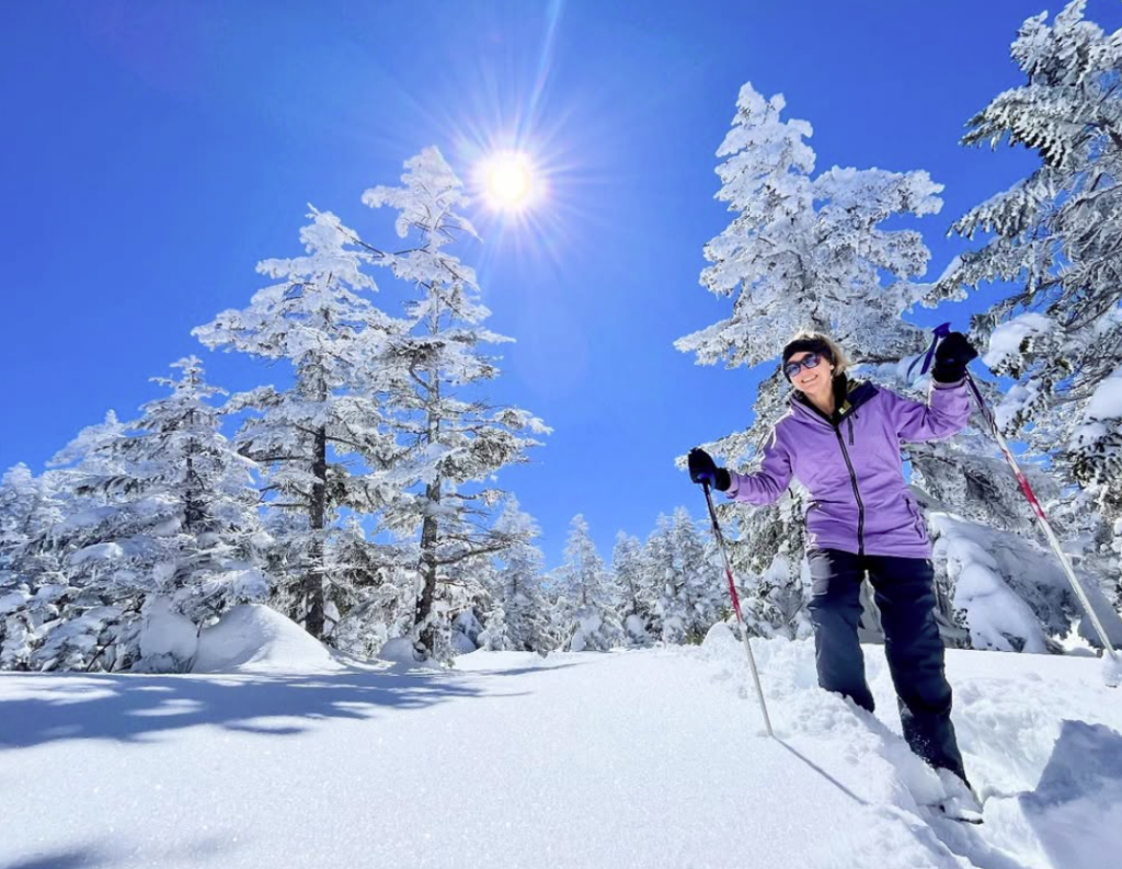 同じく山頂ではカナダ🇨🇦からの女性も参加。怪我でスキーはムリだけど、この青空は逃したくない!という声と、「私もこんな日に事務の仕事なんかしたくない!」という願望が完全マッチ💯 サイコーなツアーでした!