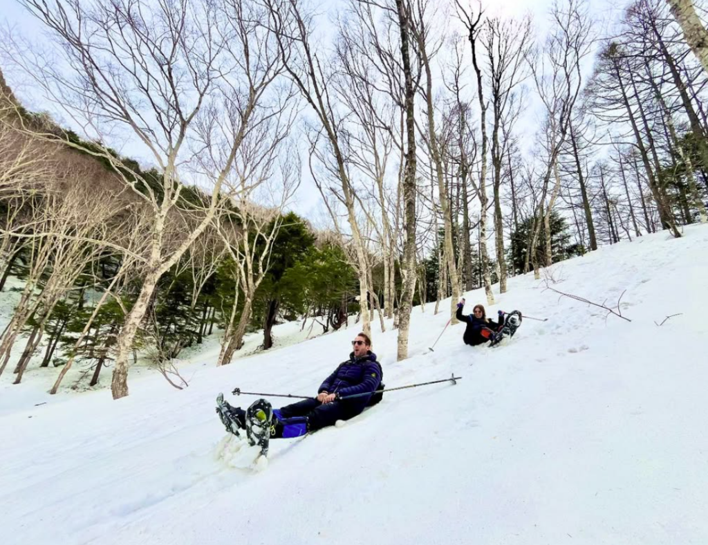 みなさんスキーヤー⛷️ということで、今回は滑って下れるルートを多めに選択。足で滑ったり🦶、尻で滑ったり🍑しながらテンポよく進みます♪