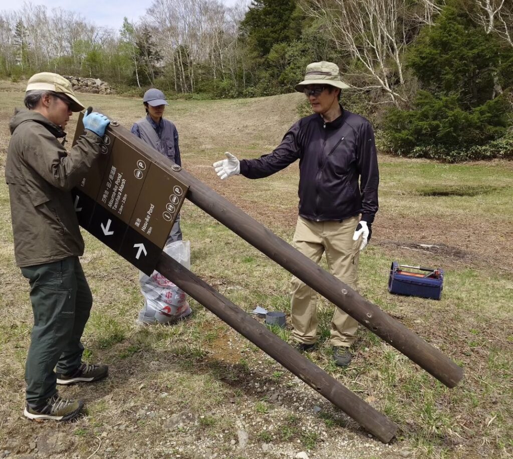 〜登山道・遊歩道の看板付けて作業〜 安心して歩いていただけるように看板を設置の作業を行っています💪