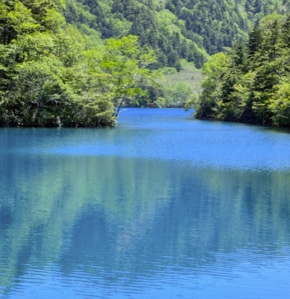 新緑に囲まれて神秘的に碧く美しく輝いていました