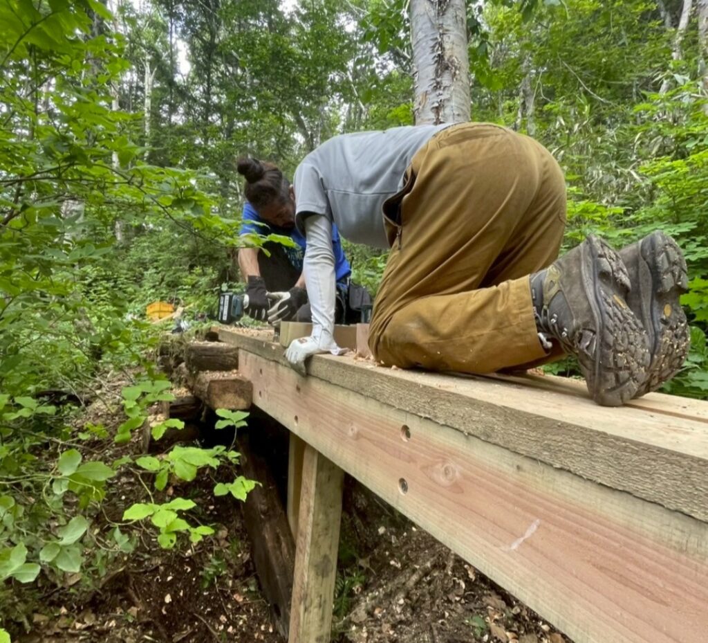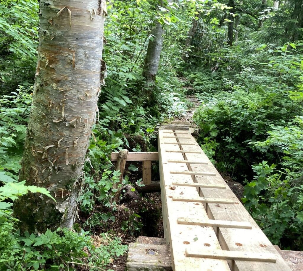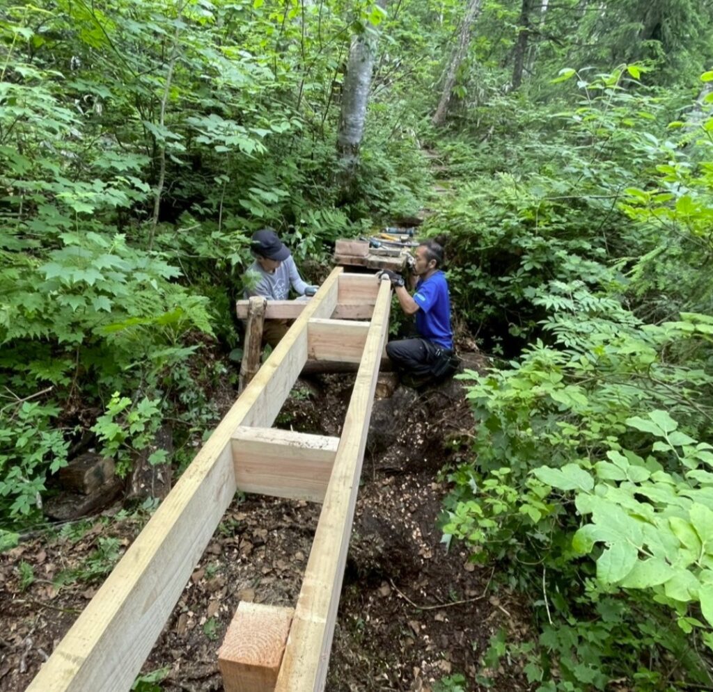 木道橋の数か所崩落により一時通行止めにしていた清水新道を急ピッチで修繕し、本日7月20日正午よりオープンいたしました💪