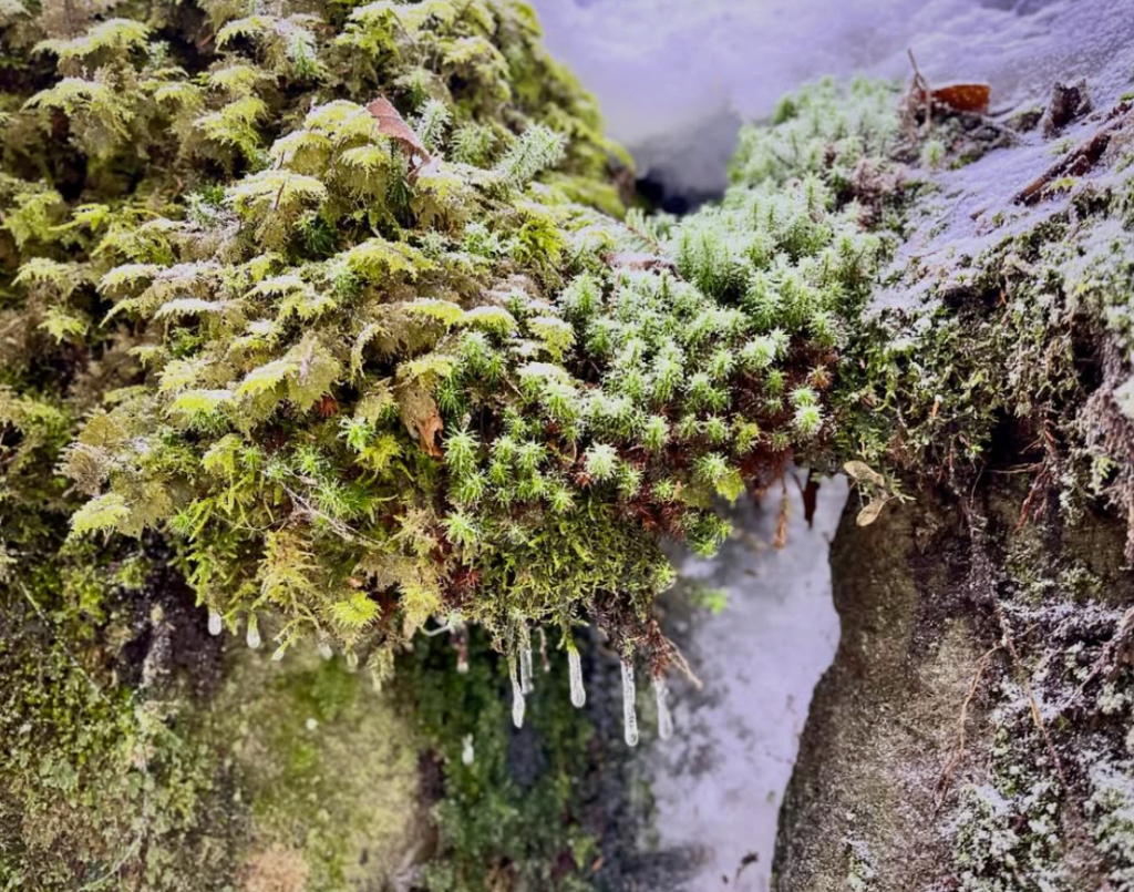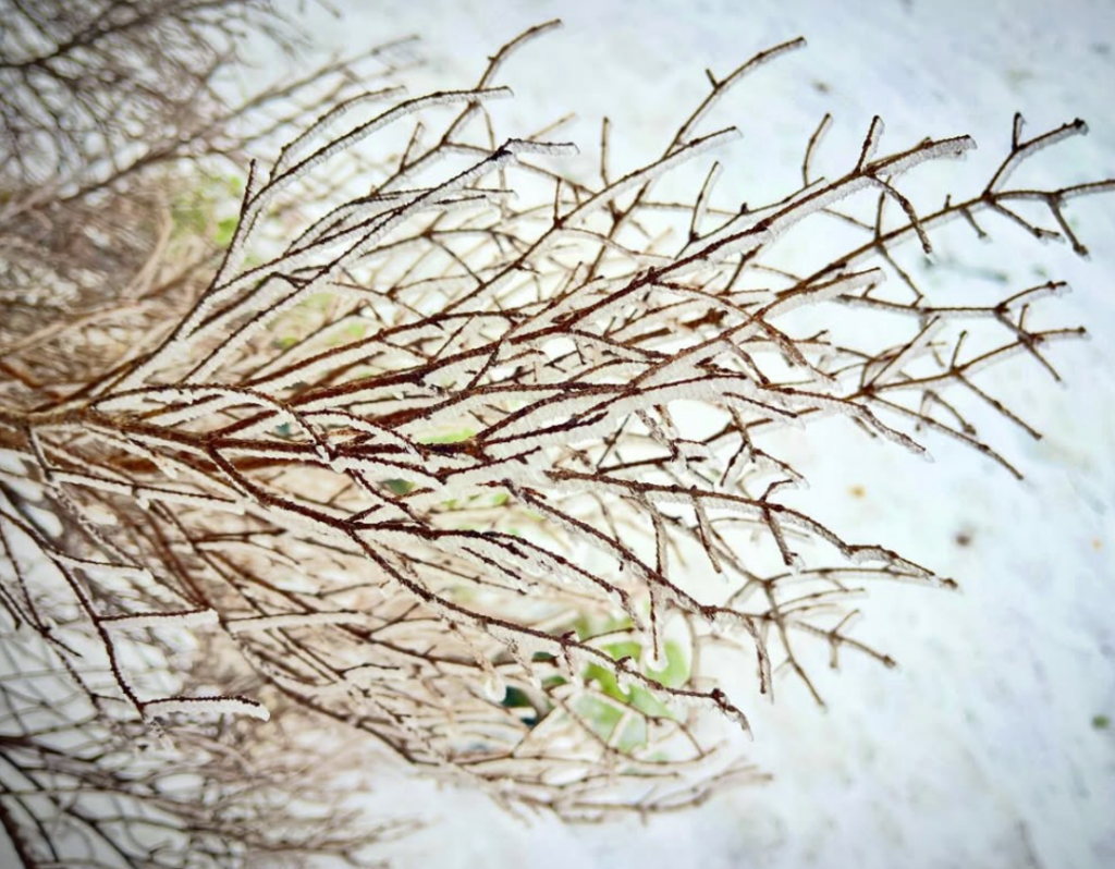 グレージュ色に凍りついた森は、静かで、繊細で、息をのむ美しさでした。